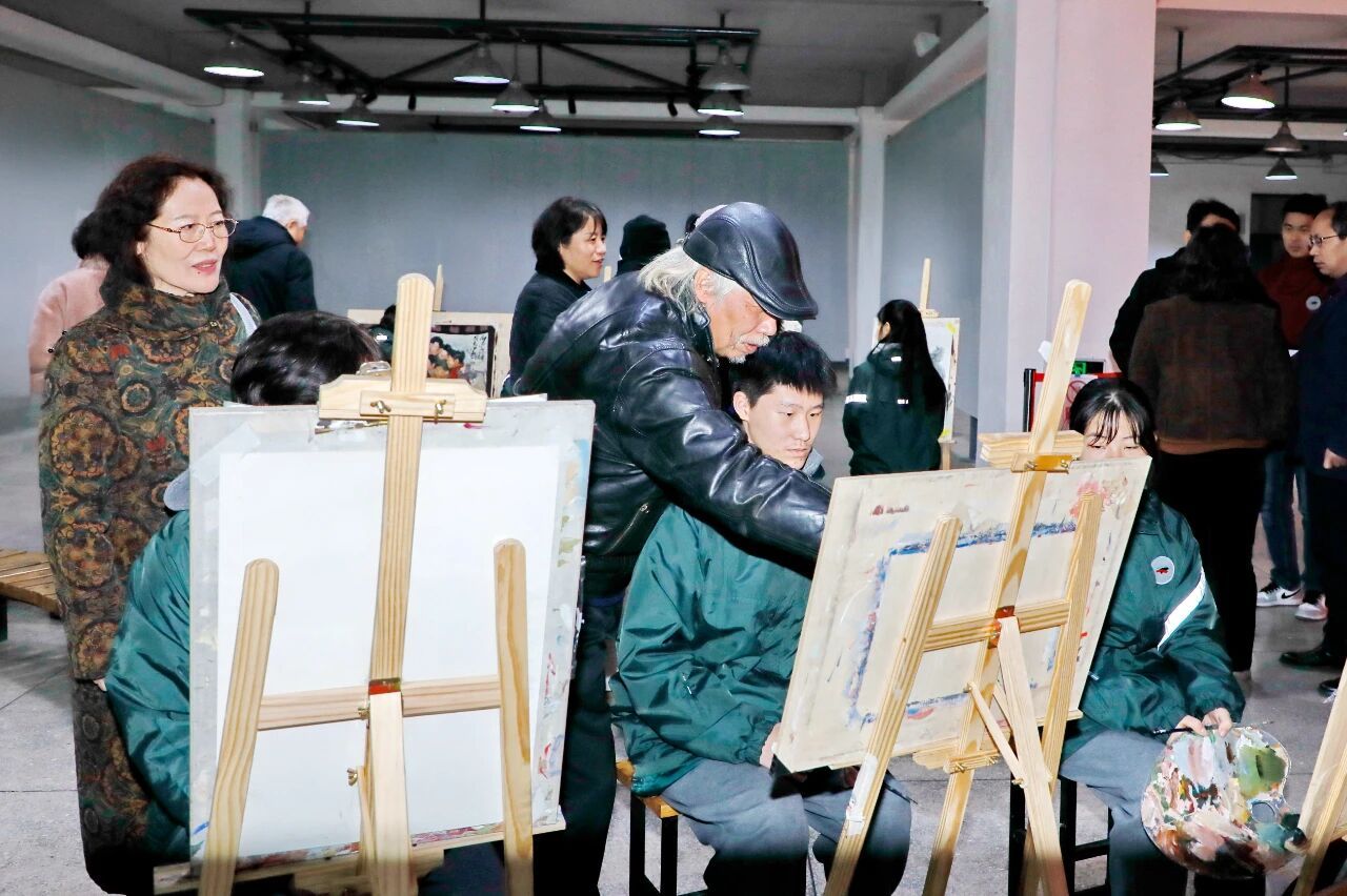 活动最后,丹青共绘环节将现场氛围推向高潮。同学们与鲁美老党员、老艺术家们携手同绘雷锋主题画作,老艺术家们亲身示范、悉心指导;学子们挥毫泼墨、用心描绘,将新时代志愿服务场景融入画作。两代艺术人思想碰撞、精神交融,艺术创作的精彩呈现,承载着他们“艺心向党、践行雷锋”的坚定誓言。活动尾声,他们合影留念。