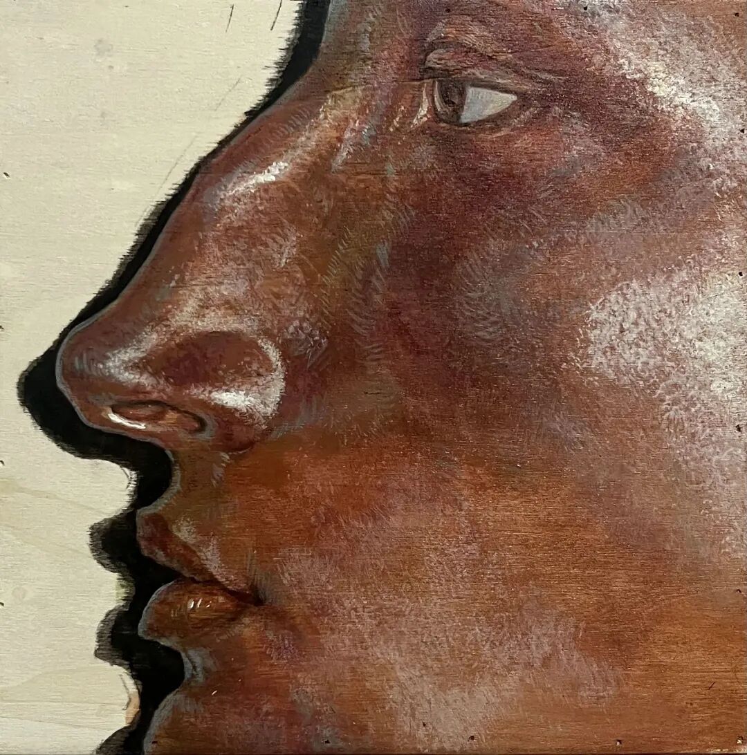 李博文《侧脸》 水性坦培拉 20×20cm 2025年