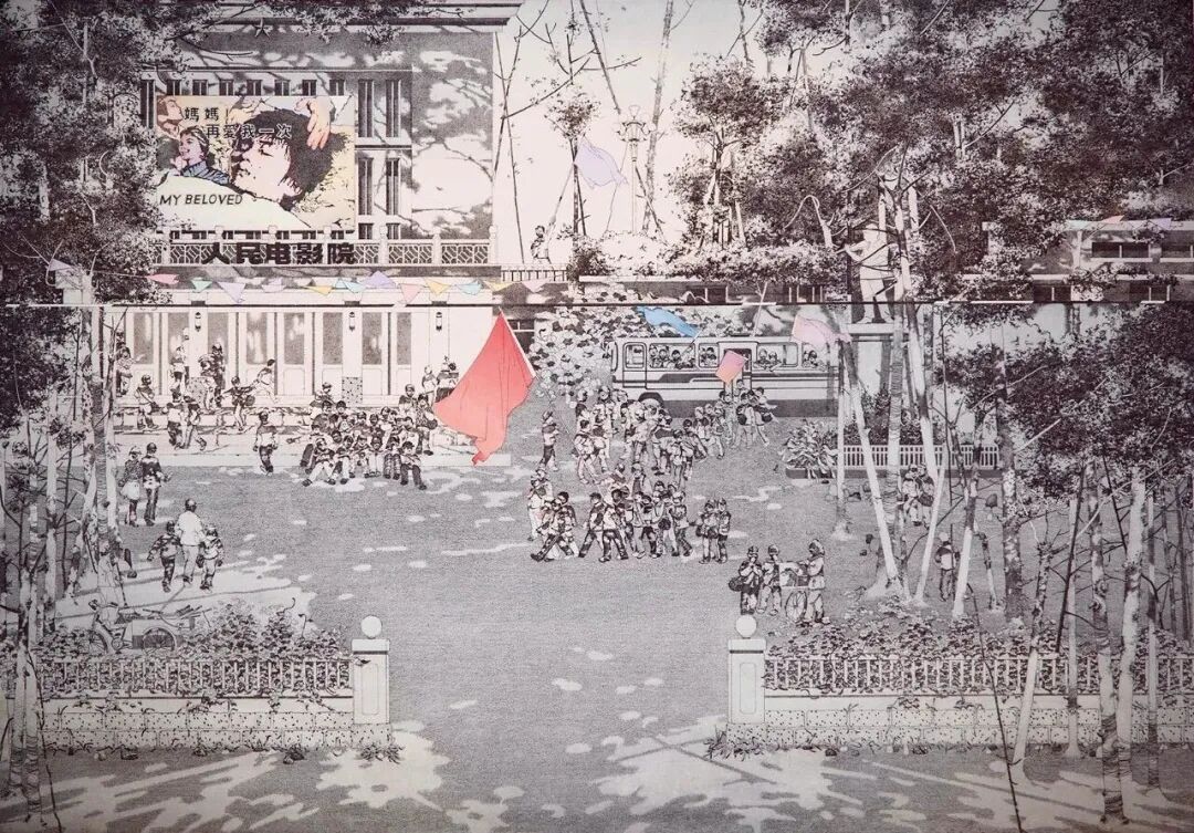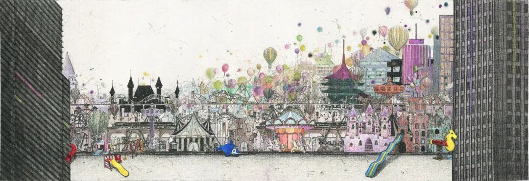 王戈《城市风光——共享家庭乐园》综合版 150cm x 60cm 2025年