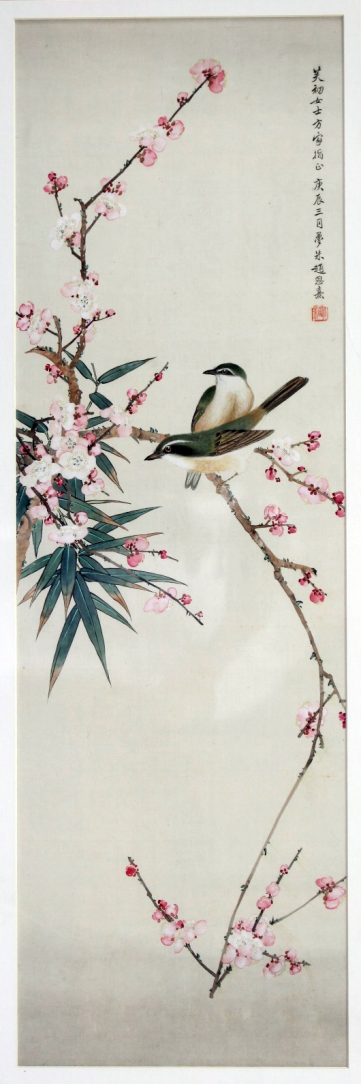 赵梦朱 《梅花小鸟》 86×27 绢本设色 1940年