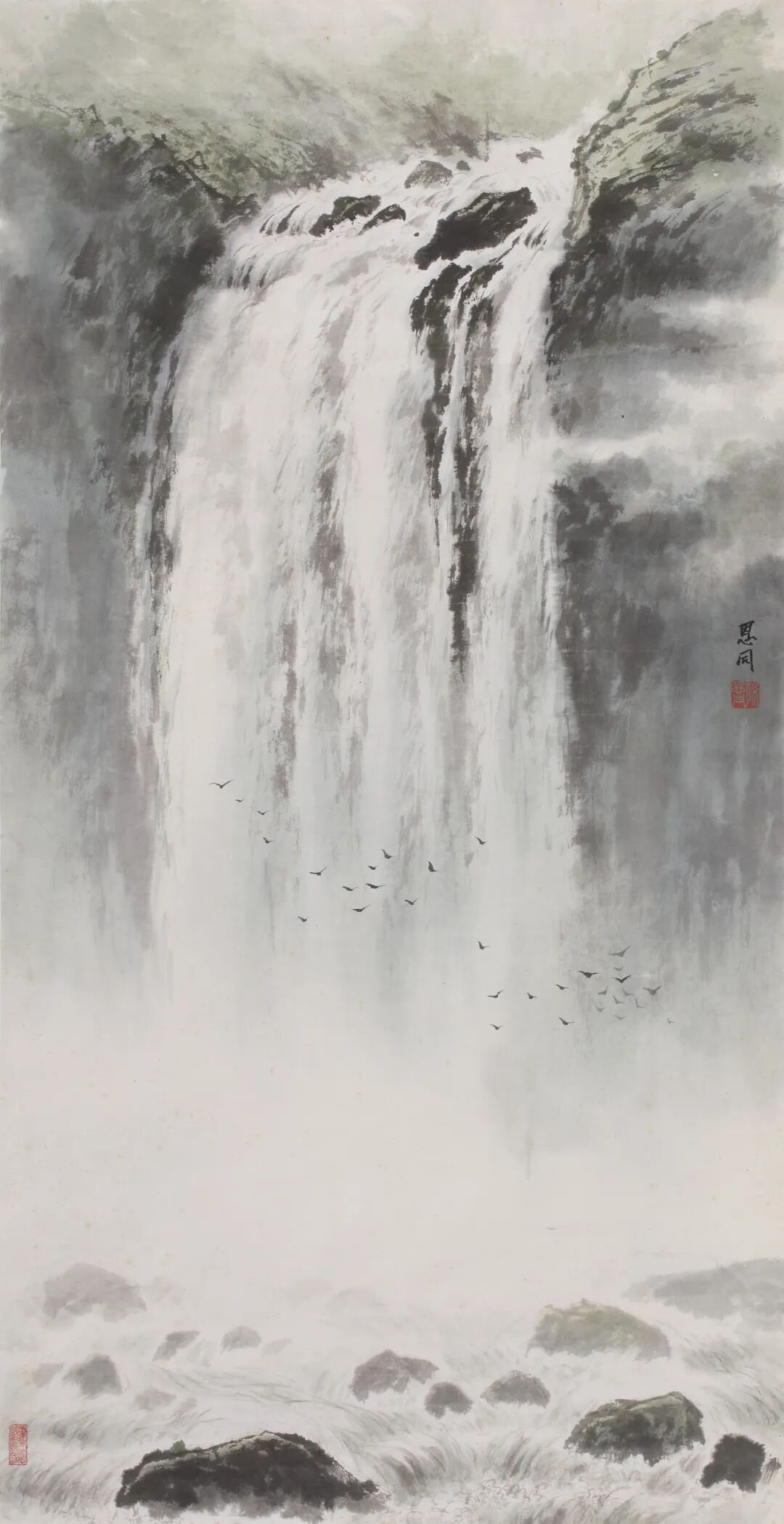孙恩同 《天池瀑布》 纸本水墨 97×33cm 年代未知