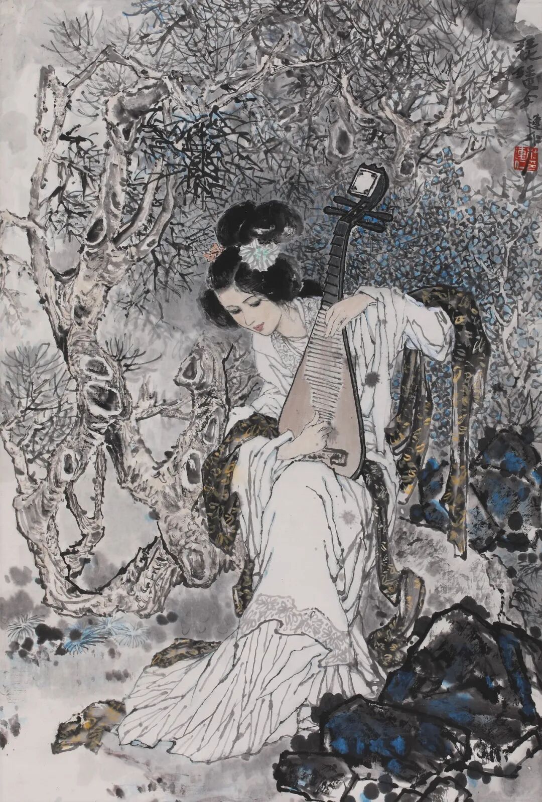 杜连仁 《琵琶女》 纸本水墨 67×45cm 1998年