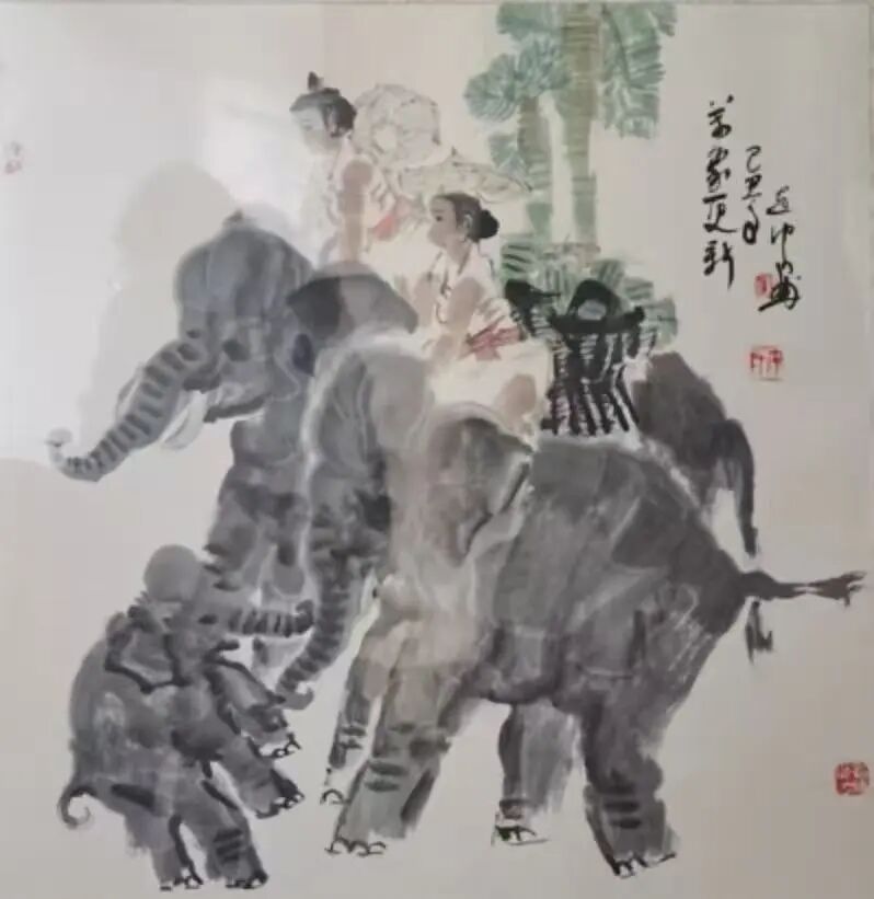 晏阳 《两个画家》 宣纸墨 180×120cm 1995年