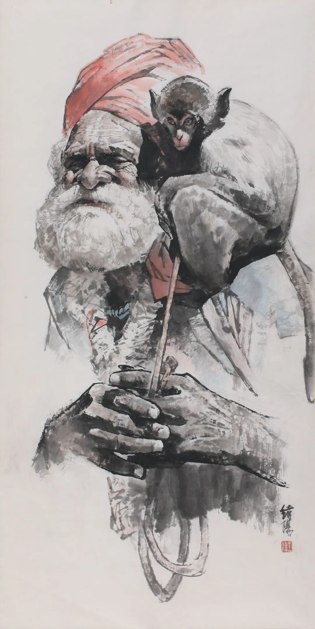 刘建华《大写意水墨肖像》纸本设色 170×82cm 2006年