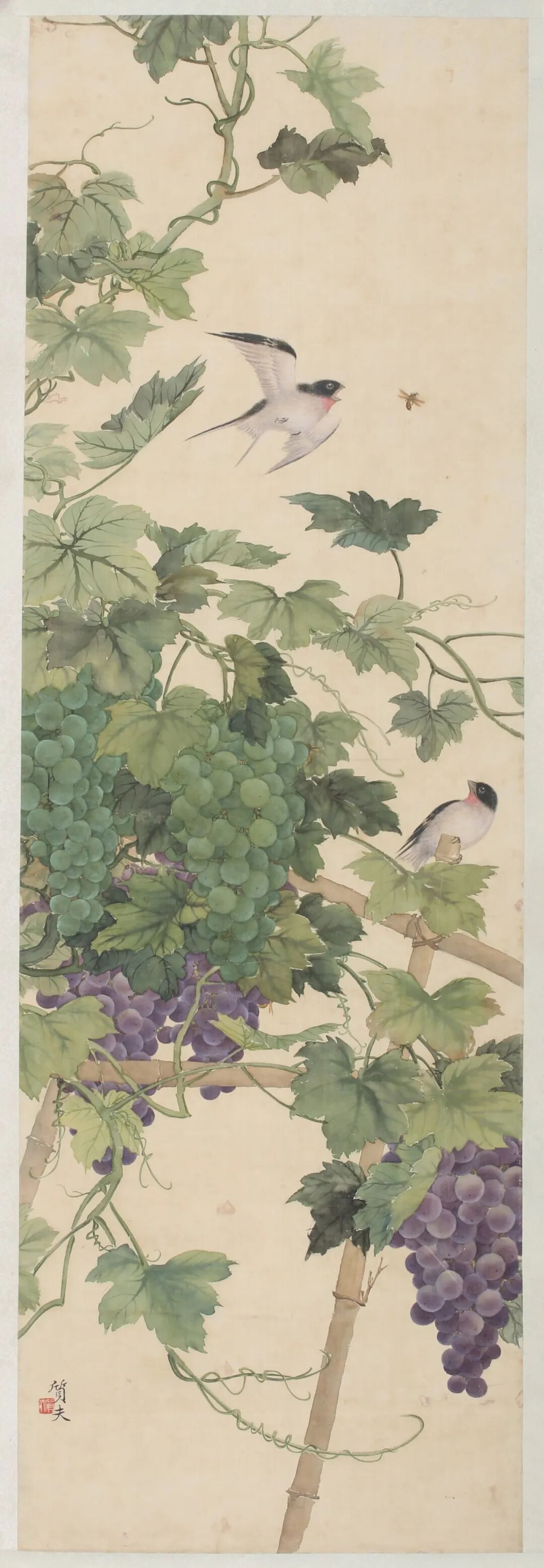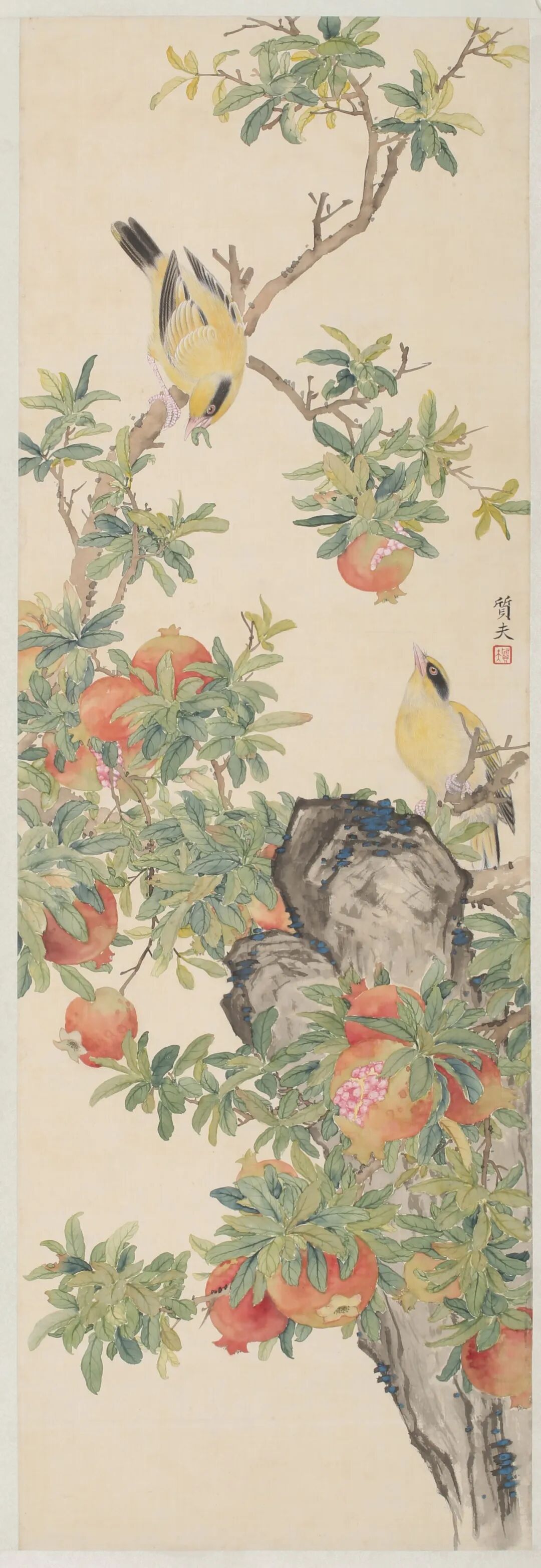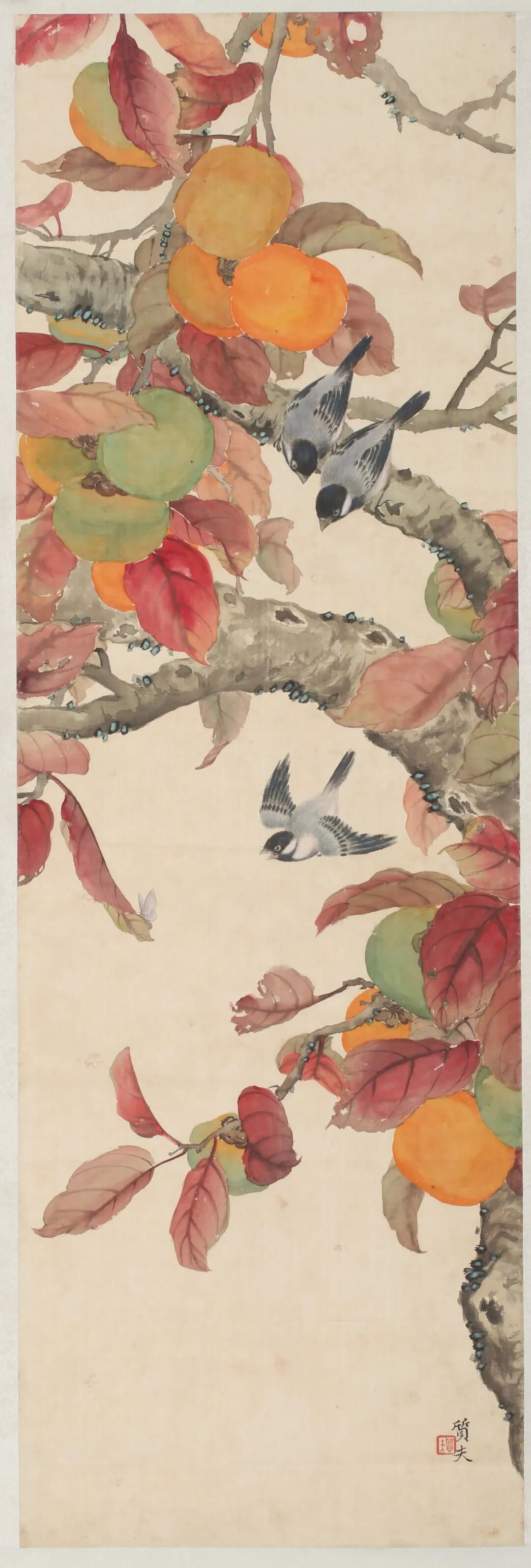 钟质夫 《硕果累累》 绢本设色 97×33cm×4 1952年
