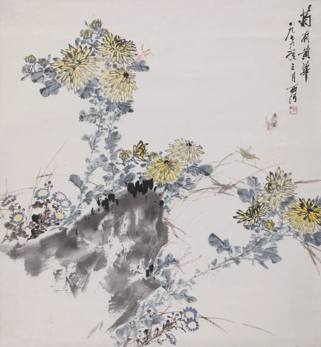 郭西河 《菊有黄华》 纸本水墨 95×88cm 1979年