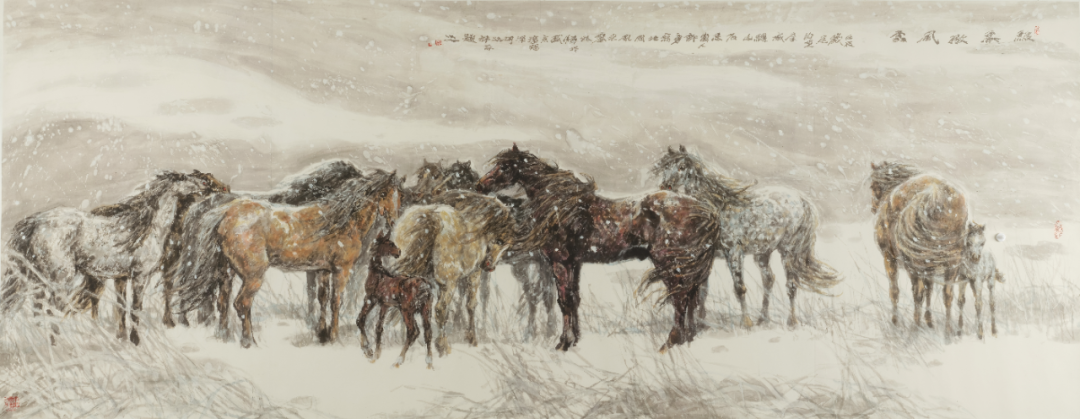许勇 《骏马傲风雪》 纸本设色 140×363cm 2012年