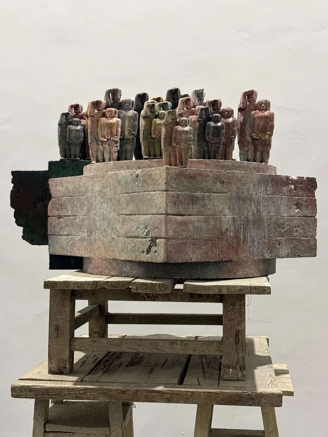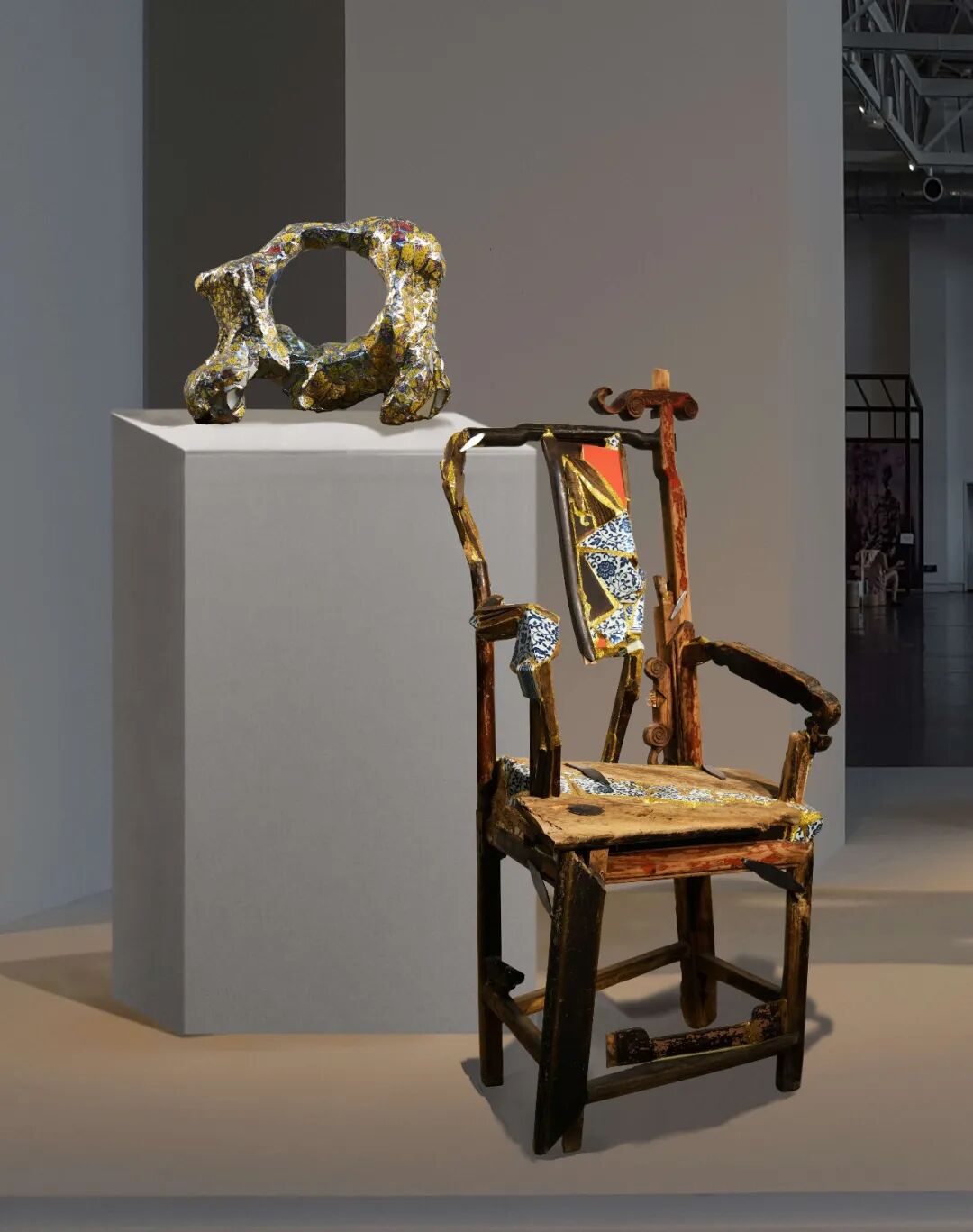 孟蝴蝶《不息的循环之六》170×120×100cm 旧家具碎片、木、陶、瓷、大漆、金银箔、金属锔钉等 2020年