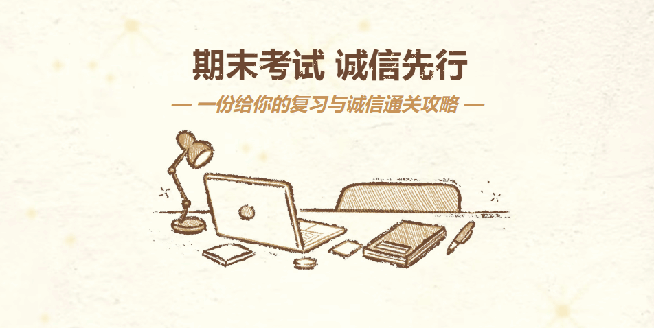 考试是阶段学习的总结,也是下一程的起点。让我们用真实的努力兑换扎实的成绩,用诚信的态度书写无愧于心的答案。愿你笔下生花,不负所学;愿你心向光明,无愧诚信。诚信考试,从容提笔。这个期末,我们以实力说话!