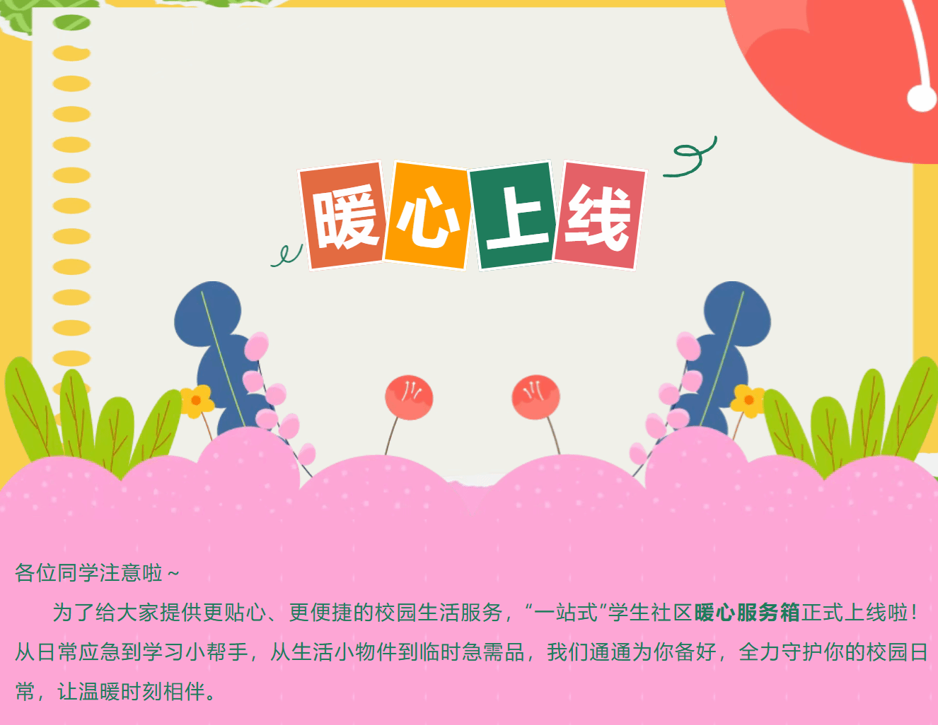 愿这份小小的温暖能为你化解生活里的小麻烦,陪伴你在校园里安心学习、快乐生活。