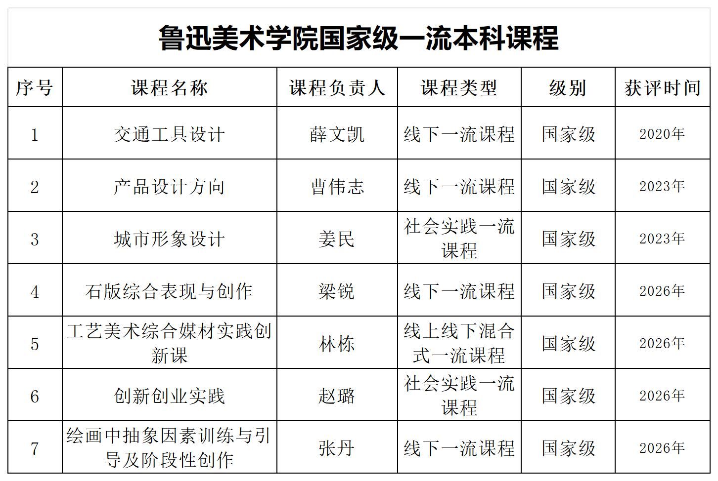 鲁迅美术学院国家级一流本科课程