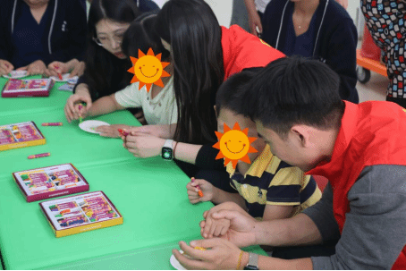 活动现场,在王蓉副教授与志愿者们的悉心引导下,孩子们化身为小小艺术家与治疗师、志愿者们一同沉浸在纸盘的创作中。他们用五彩斑斓的线条绘制成最特别的礼物,表达着对作业治疗师的爱与感谢。