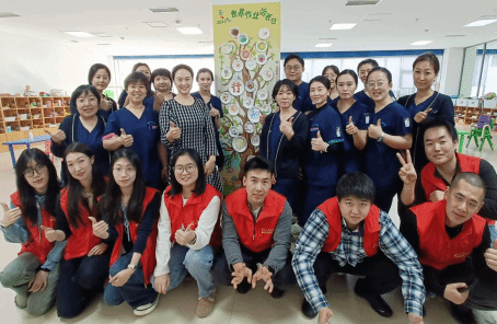 活动开始前,志愿者们将提前绘制好的海报粘贴到OT训练室的墙面上。海报上的参天大树象征着爱与希望,饱含着对孩子们的美好祝福!