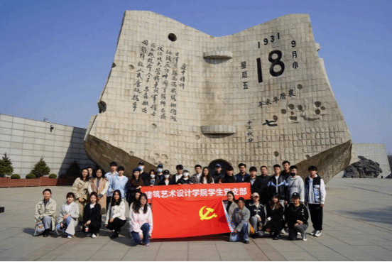 建筑艺术设计学院学生党支部师生党员在九一八石碑前合影
