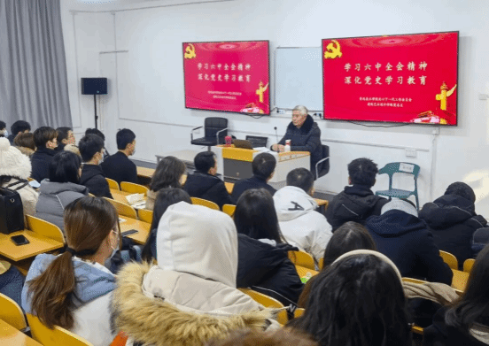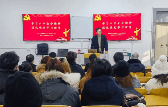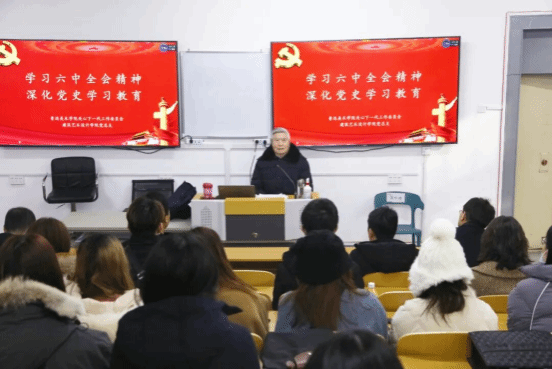 为深入学习党的十九届六中全会精神,推进党史学习教育走深走实,充分发挥老党员干部经历阅历丰富、专业造诣深厚、师德师风高尚、悉心关爱学生、深受学生尊重的独特优势。12月7日,建筑艺术设计学院党总支联合鲁迅美术学院关心下一代工作委员开展主题党日活动。邀请鲁迅美术学院原纪委书记李洪森为青年学生讲《深刻领会党百年奋斗的历史经验,学习党的十九届六中全会精神心得体会》专题党课,离退休工作处处长兼党总支书记李庆东、建筑艺术设计学院党总支书记王凯、党员师生代表参与此次活动。