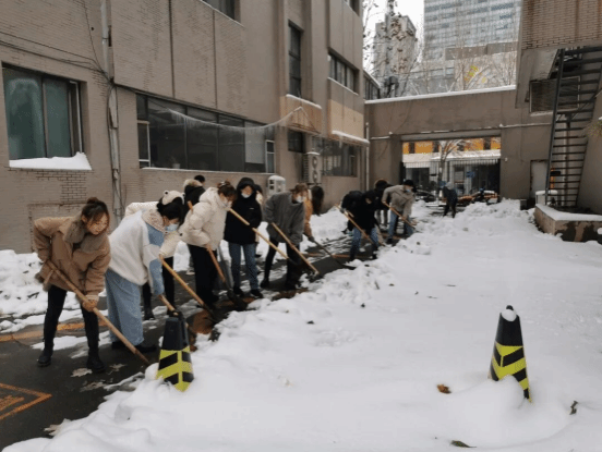 同学们积极响应号召,不畏严寒、积极主动、相互配合、齐心协力,挥着铁锹,一点点地将积雪和冰层铲起集中堆放,大雪悄无声息地给大地穿上新装,而同学们的热情就像冬日里的暖阳般温暖明亮。经过一个小时的持续劳动,志愿者们完成了鲁迅美术学院东门消防通道、综合楼小巷及宿舍出入口等大型机械无法通行地方的清理工作。一条条清洁的小道给师生们送去的不仅仅是方便、安全,更是传递了一份温暖与正能量。