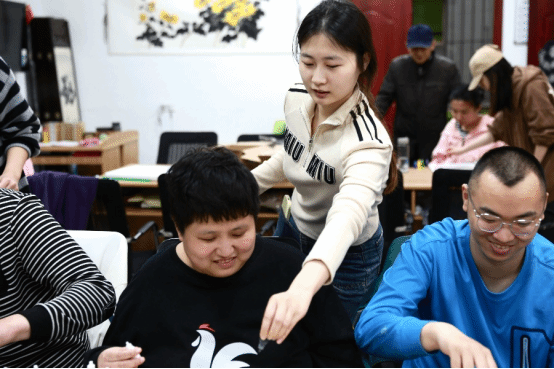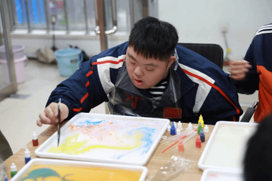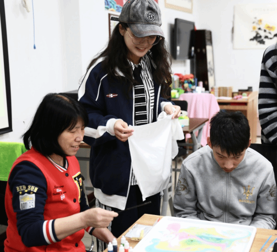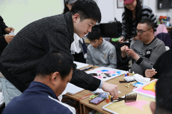 2025年5月14日,我院党总支、团委联合沈河区滨河街道阳光之家,以非遗技艺“水拓丝巾”为载体开展公益活动。通过传统技艺实践,助力参与者发挥艺术创造力。自2021年项目启动以来,我院七彩课堂志愿团队已构建起“党建引领、专业赋能、校地协同”的长效育人机制,多次开展主题志愿活动,组织师生志愿者近百余人次,逐步形成以特殊儿童美育帮扶为核心,融合扶老助残、社区服务的立体化志愿服务体系。