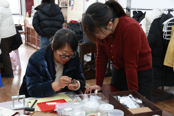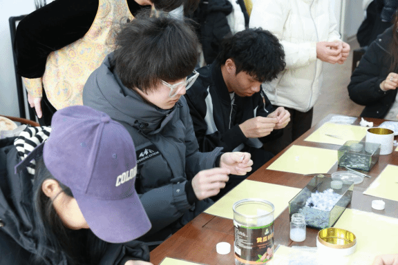 我院党总支、团委联合沈阳市残联共同举办了“非遗传承,爱心助残”主题活动活动。3月4日,我院十名志愿者前往非遗工坊,学习制作非遗合香珠与点翠工艺,指尖流淌的不仅是传统技艺,更是社会的温暖与尊重。