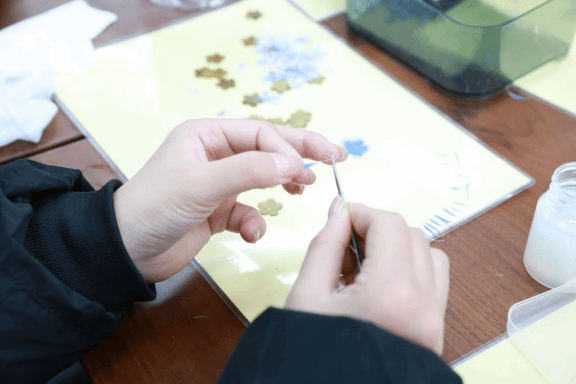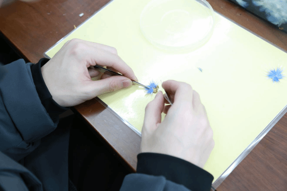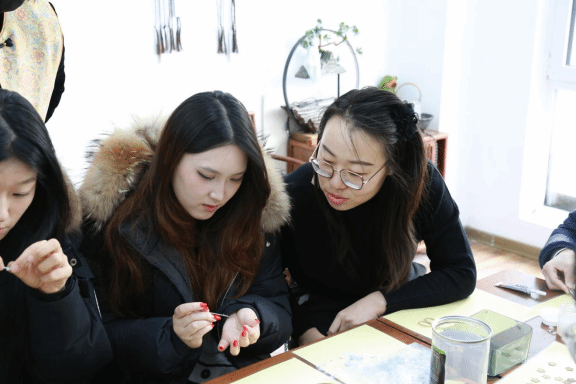 ▲非遗老师为同学讲解点翠工艺