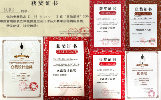 鲁迅美术学院服装立体造型制板系列课程曾获2006年辽宁省精品课程、2007年辽宁省教学成果三等奖、2018年辽宁省教学成果一等奖、2020年辽宁省教学成果二等奖、2022年辽宁省研究生教学成果二等奖;2020、2022年辽宁省线下、线上一流本科课程;2023年辽宁省普通高等教育课程思政示范课程、2024年获批全国艺术硕士专业学位研究生在线示范课程等殊荣。从2004年始至今推荐优秀学生参加“中国大学生立体裁剪设计大赛”,2004年首届金奖及2024年金奖均由鲁迅美术学院获得,期间多次获得银奖、铜奖及单项奖等。这些荣誉的取得使鲁迅美术学院服装立体造型制板系列课程在全国服装院校中处于领先地位,获得同行院校、企业由衷赞誉。