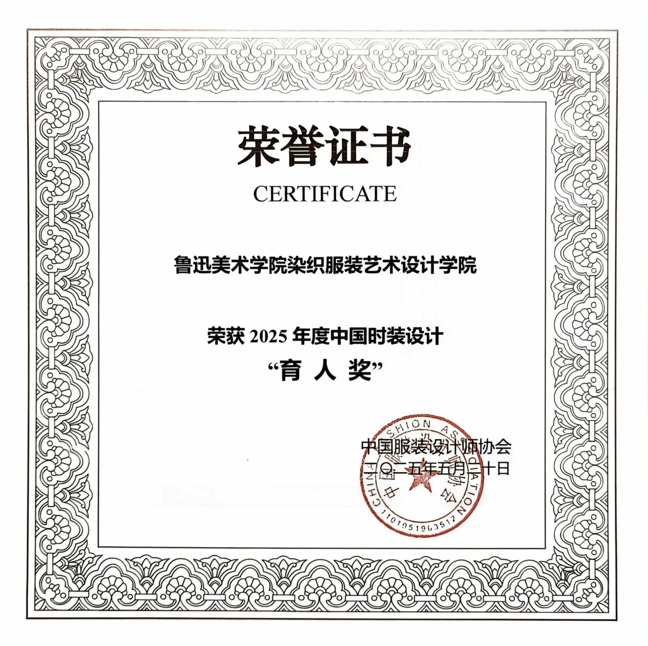 2025年5月22日,第30届中国时装设计 “新人奖” 终评结果在北京揭晓。鲁迅美术学院染织服装艺术设计学院研究生王镇逍凭借出色的专业能力和设计才华,从众多优秀选手中脱颖而出,荣获这一备受瞩目的奖项。同时我院荣获2025年中国时装设计“育人奖”,周宏蕊老师荣获“优秀指导教师奖”。