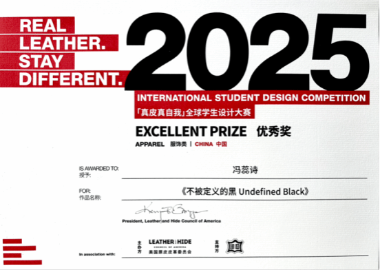 近日,真皮设计界备受瞩目的2025“真皮真自我”全球学生设计大赛中国大陆赛区颁奖典礼于上海圆满落下帷幕,我院学生宗选泽、冯蕊诗、黄欣茹在来自全国众多所设计院校的数百名参赛者中脱颖而出获得佳绩,其中宗选泽同学获得皮具类季军,冯蕊诗同学和黄欣茹同学分别获得服饰类和皮具类的“优秀奖”,王晓莹副教授获得“最佳导师奖”。