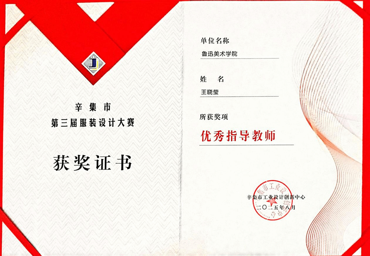 ▲我院教师王晓莹副教授获得河北国际工业设计周第三届服装设计大赛“优秀指导教师奖”