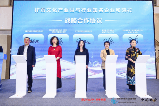 鲁迅美术学院染织服装艺术设计学院副院长张馨月及教师代表参加了此次活动。活动现场,柞蚕文化产业园与学院签订了“鲁美柞园辽韵研创出海基地战略合作协议书”并授牌,双方将在产业协同、科技创新、市场开拓、文化出海、教育出海等领域深化合作,促进区域资源高效联动。