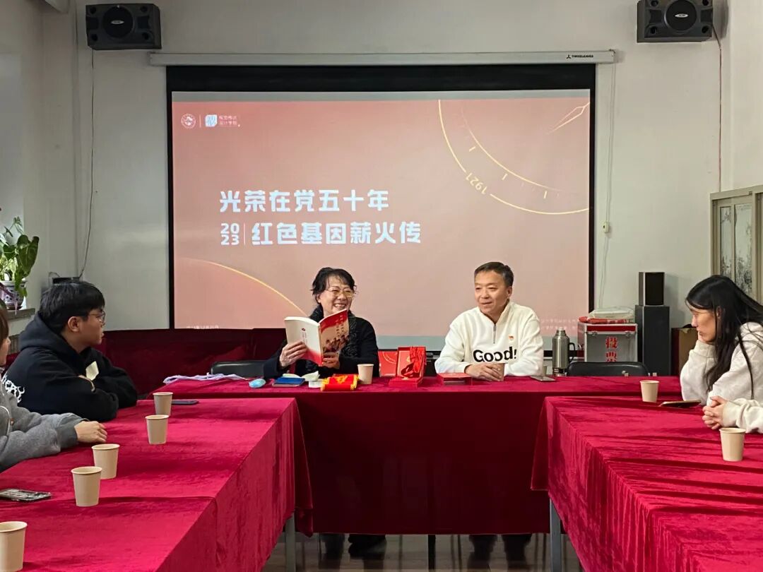 为推进学习贯彻习近平新时代中国特色社会主义思想主题教育走深走实,进一步提高基层党组织“三会一课”质量,2023年12月25日下午13:00,视觉传达设计学院党总支联合鲁迅美术学院关心下一代委员会开展“光荣在党五十年,红色基因薪火传”主题党日活动。视觉传达设计学院组织2023年下半年新发展的14名党员来到鲁迅美术学院离退休工作处会议室,邀请学院关工委办公室黄海燕老师为新党员们上了一堂别开生面的党课。