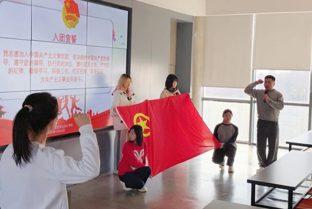 青春心向党,建功新时代。2025年12月26日上午,一场庄严而富有教育意义的入团仪式暨入团教育活动在视觉传达设计学院多功能教室举行。视觉传达设计学院2025级新发展的团员经过组织的培养与考察,在学院师长的见证下,光荣加入了中国共产主义青年团。