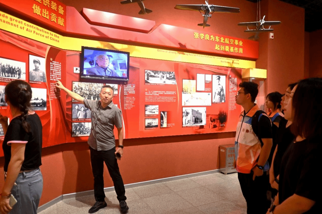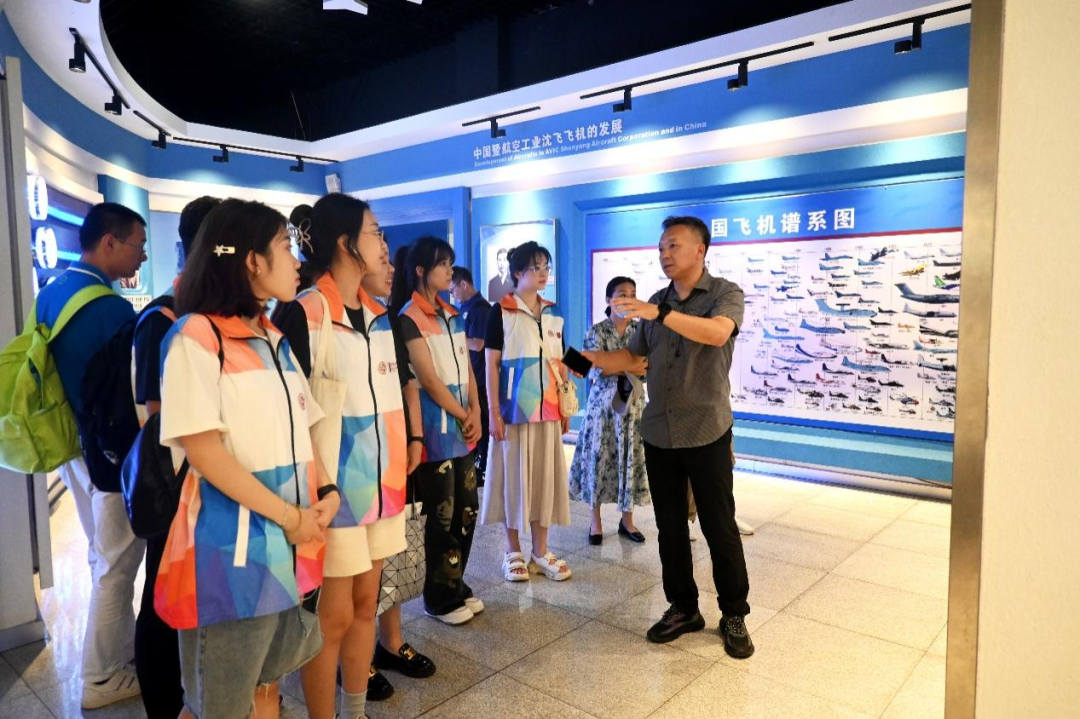 2024年8月24日,视觉传达设计学院党总支书记张松川、副书记高超带领践行团的同学们参观了沈飞航空博览园,通过博览园内陈列的飞机模型和历史文物,生动展示了沈阳飞机制造公司从无到有、从小到大的发展历程。展馆内详细介绍了沈飞在我国航空工业中的重要地位,以及历代航空人的奋斗故事和辉煌成就。看到一架架曾经翱翔于蓝天的战机,大家深刻体会到航空人不畏艰难、锐意进取的精神。特别是了解到沈飞在国家安全和国防建设中发挥的重要作用后,践行团的同学们深感振奋,纷纷表示要将这份精神带回实践中,以实际行动为国家建设贡献力量。此次参观使成员们更加了解国家航空工业的发展历程和辉煌成就,增强了爱国热情和使命感,深受感慨与鼓舞。