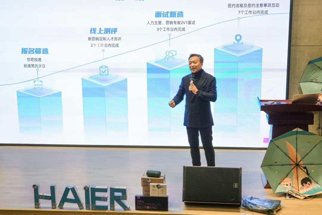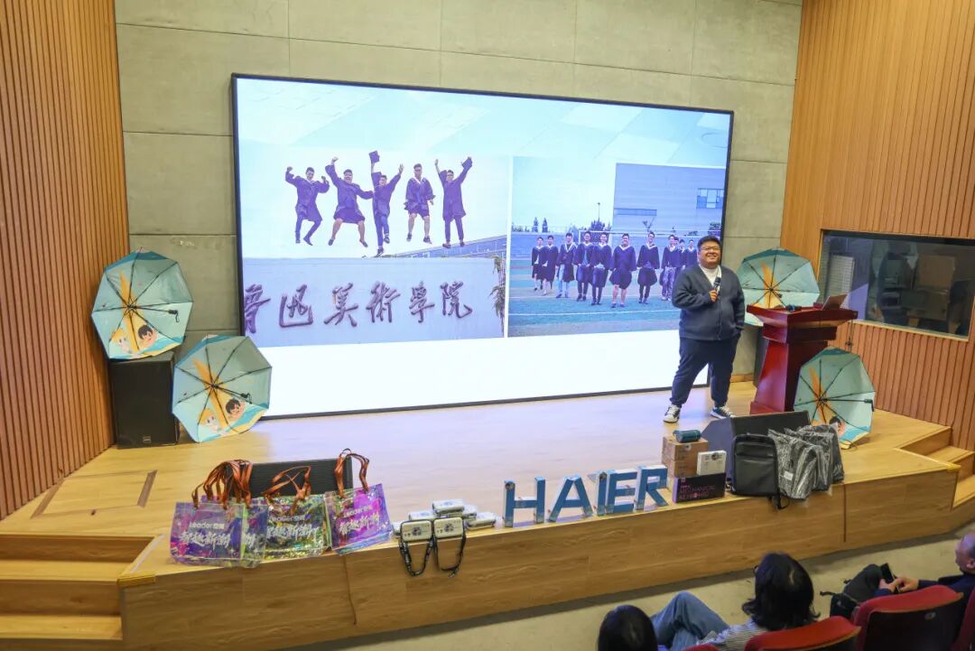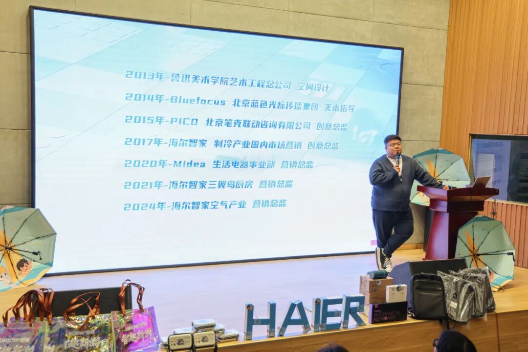 同日下午1点30分,海尔空气产业中国区市场营销总监、视觉传达设计学院2015届毕业生雷洪亮学长在2号学术报告厅带来了海尔集团海尔智家“入海吧!美院营销人”专场宣讲会。在宣讲会上,雷洪亮学长和海尔空调人才发展经理牛利华女士向同学们介绍了公司的招聘计划及各岗位的具体用人要求,并与同学们进行了现场互动,同学们积极参与,现场氛围十分活跃。