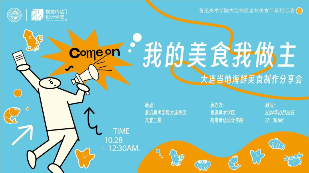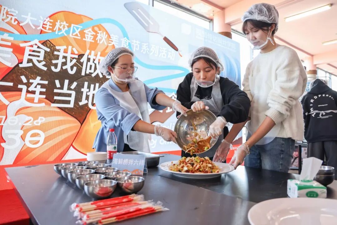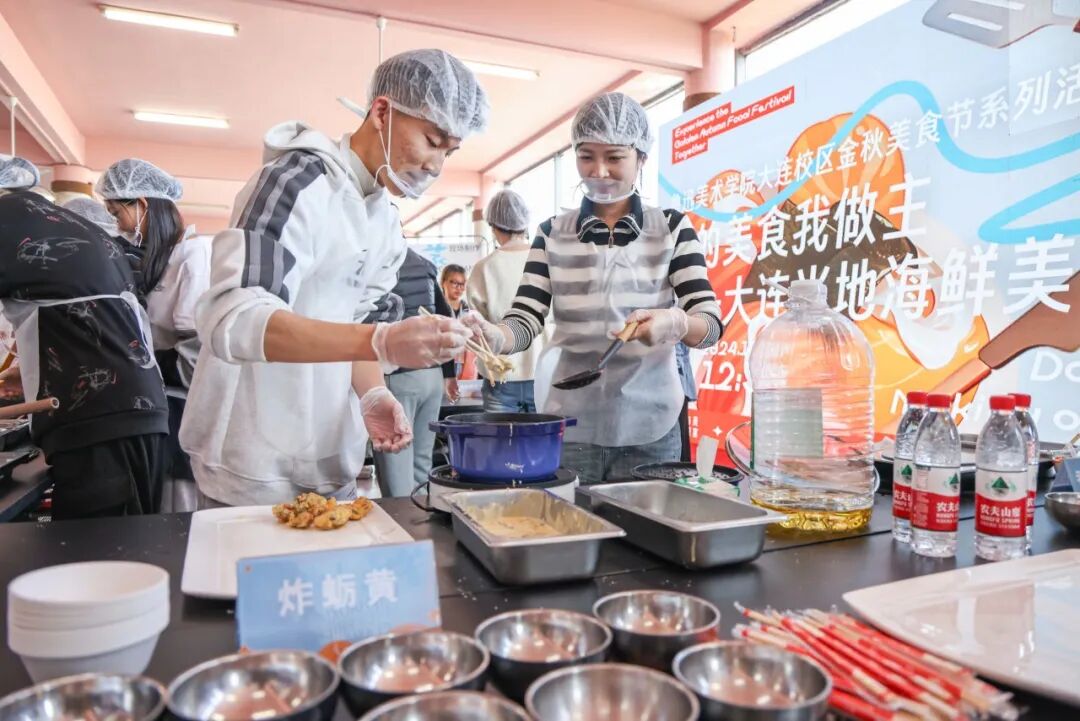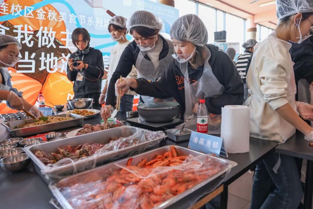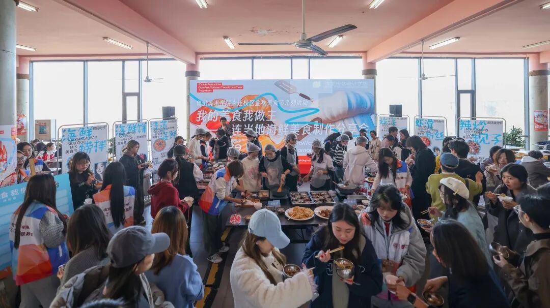 2024年10月28日中午,鲁迅美术学院大连校区食堂二楼迎来了一场盛大的大连当地海鲜美食制作分享会。此次活动是大连校区金秋美食节系列活动之一,由视觉传达设计学院承办并精心策划,旨在激发广大师生回归食堂的热情,倡导健康的生活理念,弘扬大连这座海滨城市独有的美食文化。