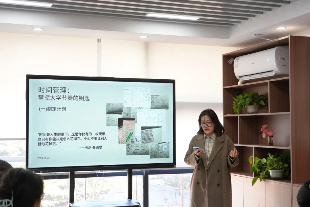 杜思睿同学从自身出发,向同学们传授时间管理和提升效率的方法,提出了排列优先级的解决方式。她建议同学们做好时间规划,提升自身自主学习的能力,更加成熟的处理学习生活中的问题。
