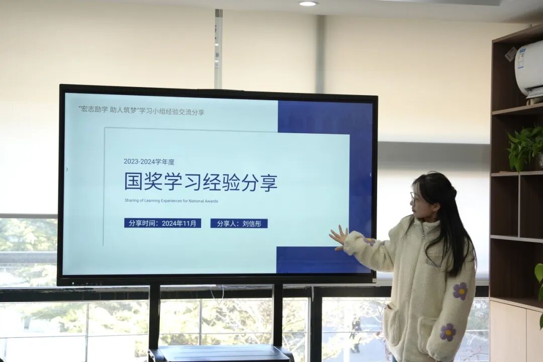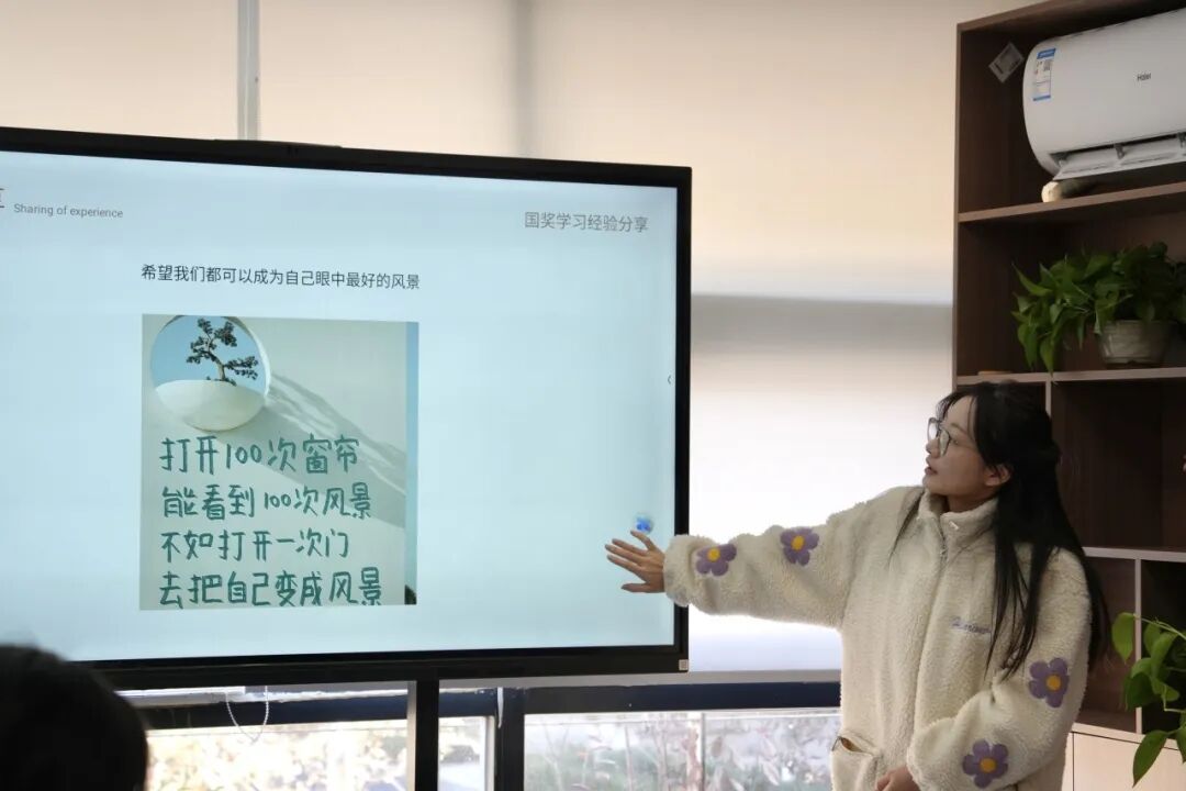 刘信彤同学通过分享自己的获奖经历,提出应该积极参加各级各类比赛,开拓视野,全方位发展。也要坚持做自己所热爱的事情,坚定目标和信念,不断朝着自己的梦想前进。
