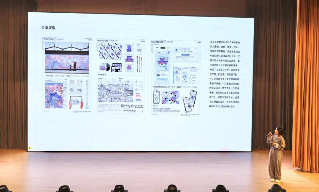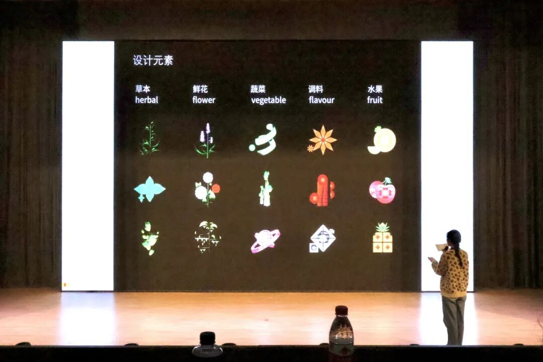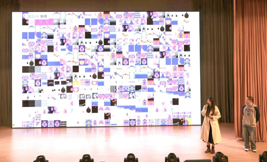刘亚璇老师从创新性、实物体验、合作精神三个方面对《喜积》这一获奖作品进行分享:作品图形来源于中国传统窗花的创新处理,学生们成功将设计转化为实物,展现了更多温度和活力,同时还展现了难能可贵的团队合作精神。刘老师期待学生们在未来创作中继续追求真诚、敢于创新。