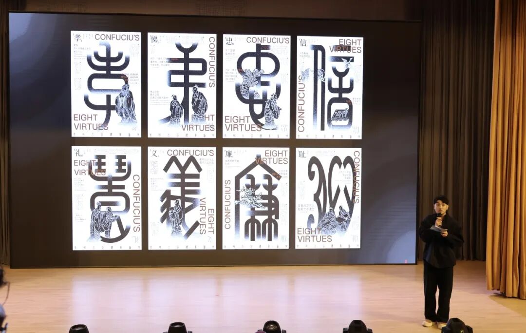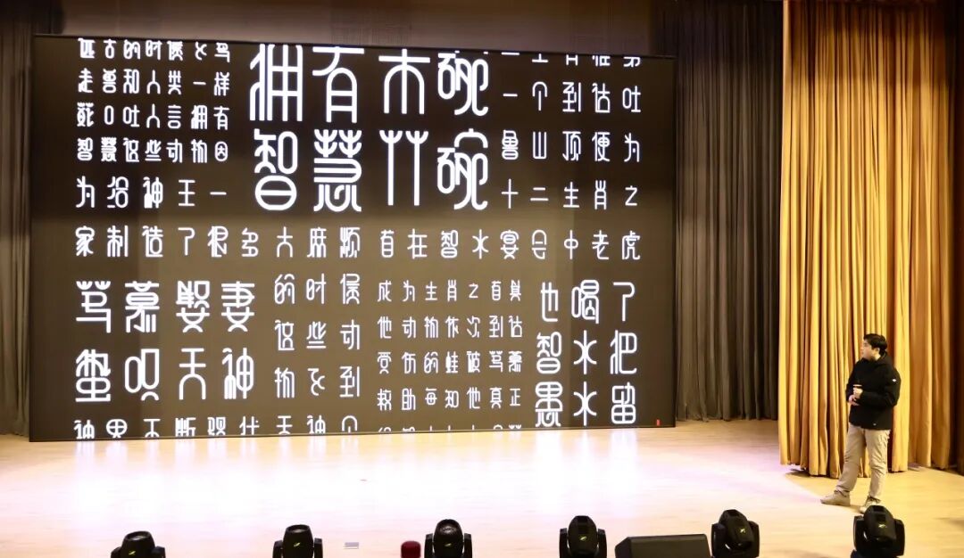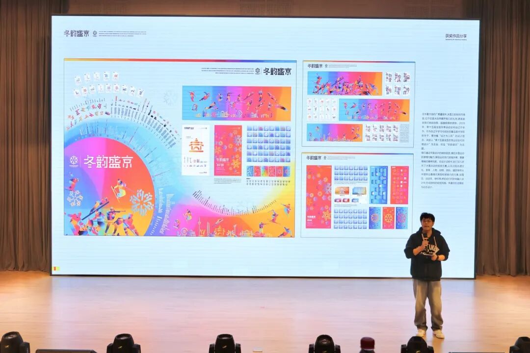高广敏老师介绍了获奖作品《和合如彝》,该作品展现了我国少数民族彝族的字体文化,设计精美而又充满巧思。他强调同学们只要用心用情产出作品,针对不同的赛事,敢于尝试不同的创作技巧和手法,学会将创作手法重新排列组合、善用巧思,在专业赛事中崭露头角的机会就会更多。