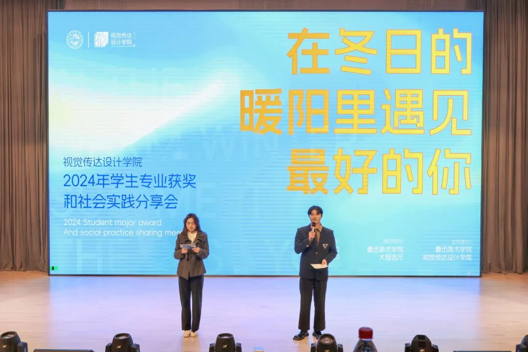 2024年12月11日下午,鲁迅美术学院视觉传达设计学院举办了“2024年学生专业获奖和社会实践分享会”。此次活动旨在通过2024年学生获奖作品和社会实践经验的分享,激发同学们的专业学习和社会实践热情,鼓励同学们积极投身到专业创作与社会实践活动中,在专业赛事中深耕专业,在社会实践中收获成长。