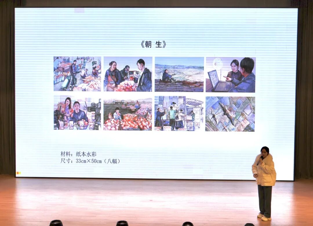 全国美展入选作品《朝生》的作者王浩源同学就其作品的创作背景、创作原型、创作过程以及真实的创作感悟进行了生动的分享。
