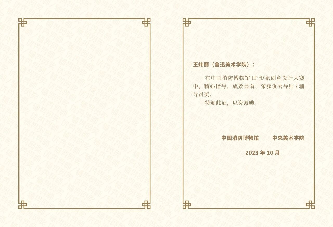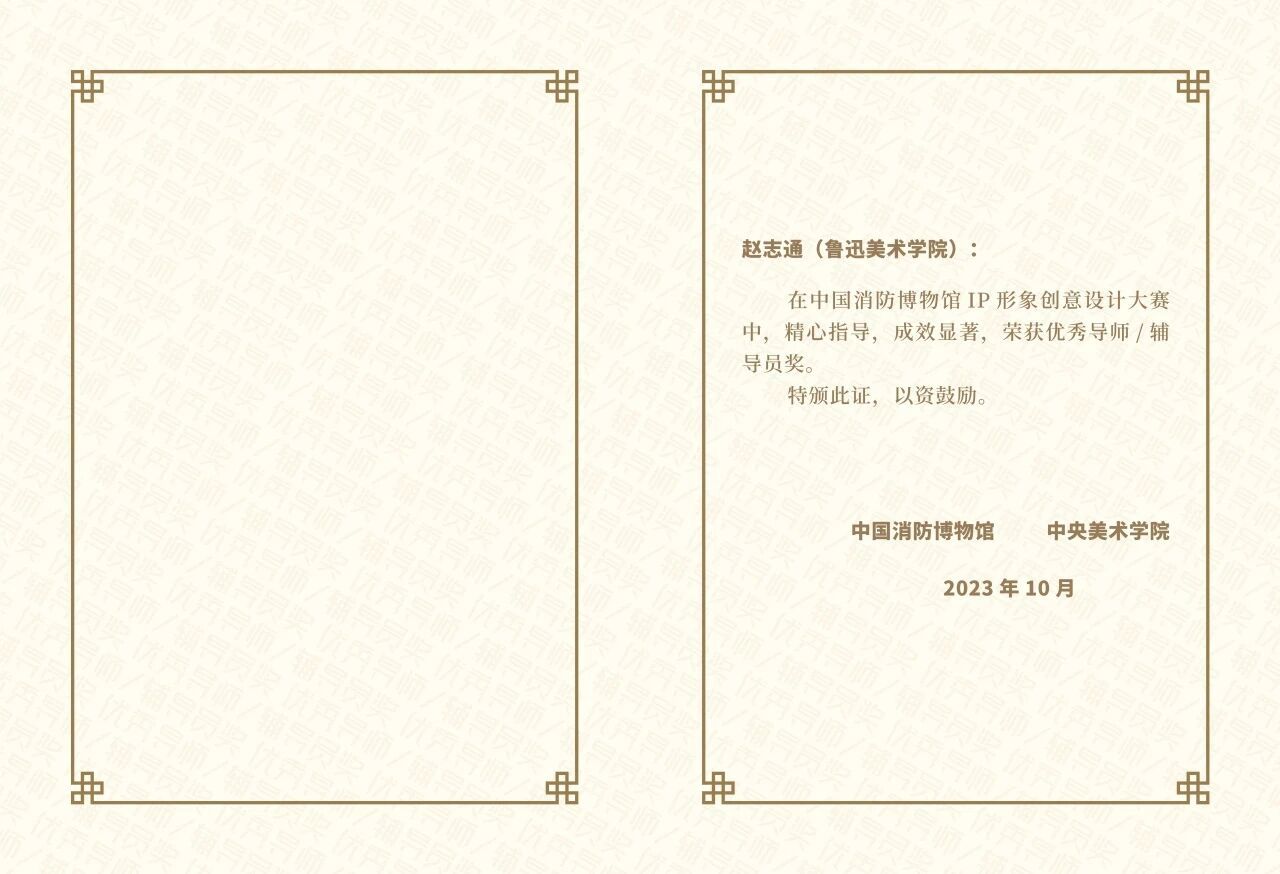 2023年9月28日,由国家消防救援局、中国博物馆协会指导,中国消防博物馆、中央美术学院联合主办,中国美术学院、鲁迅美术学院、四川美术学院、天津美术学院、西安美术学院、广州美术学院、湖北美术学院、清华大学美术学院、上海大学上海美术学院等9家重点美术院校共同协办的“中国消防博物馆IP形象创意设计大赛”落下帷幕。