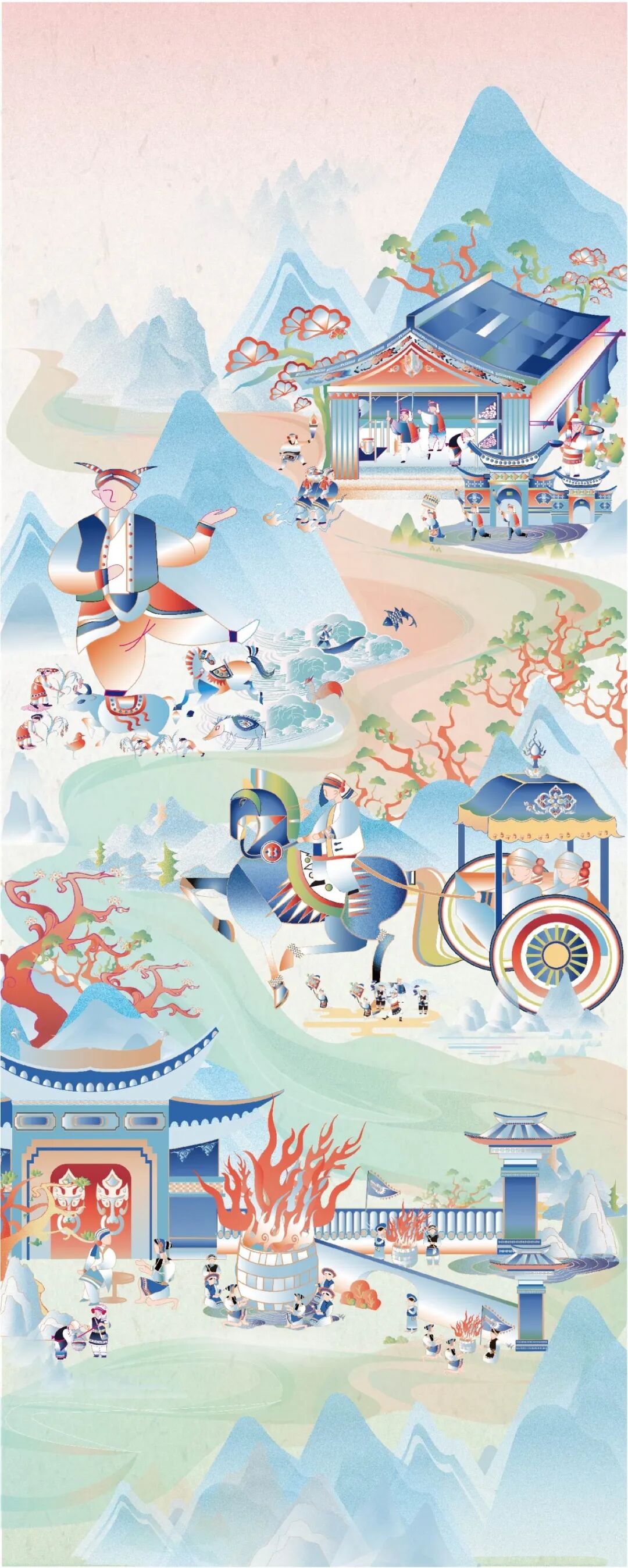 “甲马”是云南白族的雕版印刷品,在数千年漫长的农耕社会中,白族人们生活规律与大自然的四季同步,面对着岁月流转与生活的期盼,白族甲马承载着用理想主义色彩搅拌起来的缤纷生活的祈愿与向往,在云南这片广袤、富饶、美丽的土地上生根发芽。