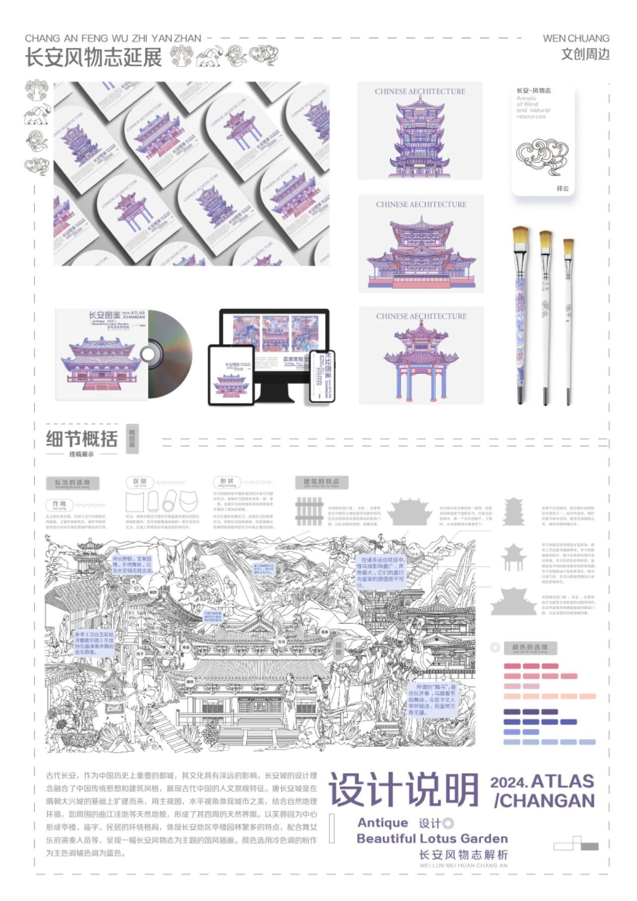 古称长安古代长安,作为中国历史上重要的都城,其文化具有深远的影响。长安城作为名满天下的一朝古都,有独特的文化根基。本作品的设计理念从他的古城建筑出发,融合了中国传统思想和建筑风格,展现了古代中国的人文景观特征。