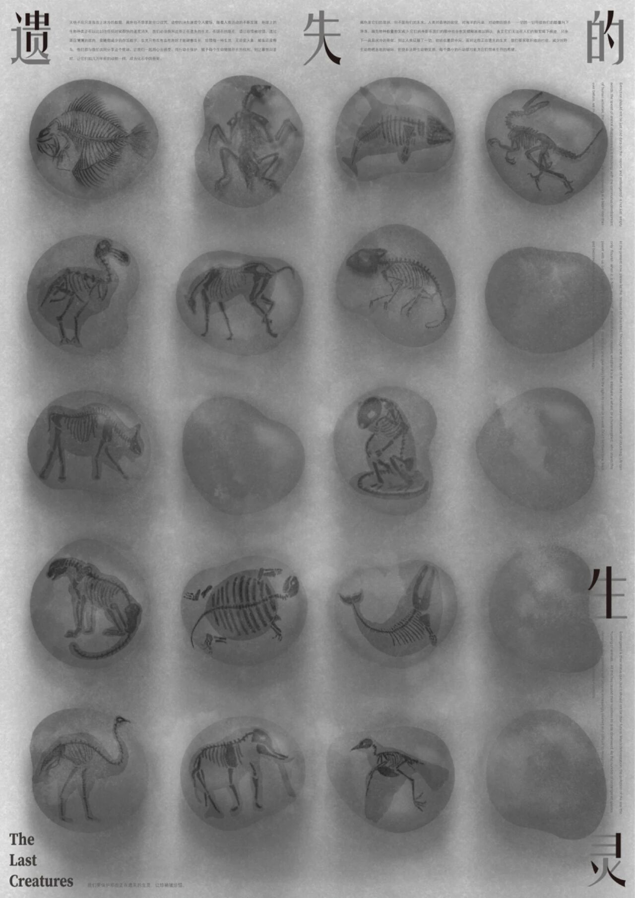 本海报通过中国传统水墨元素与保护动物的理念相结合,传达出保护动物的重要性。在设计中我们采用水墨的渐变效果,暗示自然生灵在渐渐消失,运用动物的化石与琥珀相结合,展现出动物生存的脆弱与珍贵。呈现出一种美丽、神秘又充满脆弱感的视觉效果。它将唤起人们对动物保护的关注与和重视,激发人们采取行动,共同守护我们美丽的大自然。