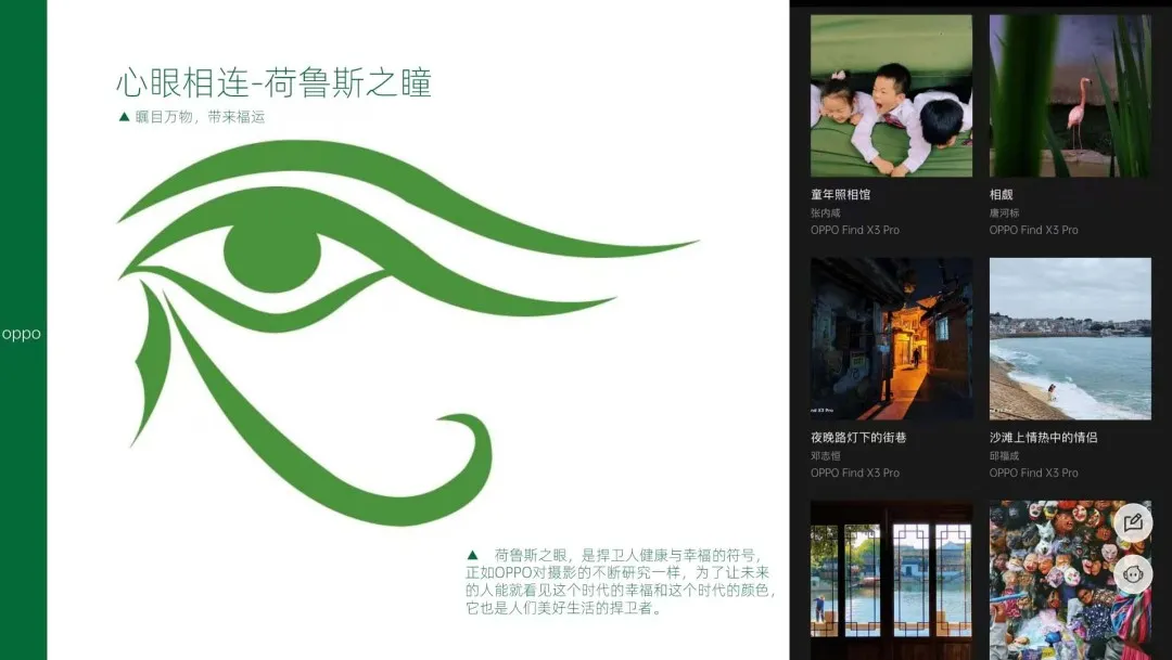 商业与会展设计课程是展陈设计方向的主干课程之一,教学重点是学习会展设计流程与方法,掌握形象推演、空间布局与整体规划。课程评价主要包括四个方面:品牌的解读,设计切入点的创新,多语言形式的呈现和事件的营造。这组学生的作业通过对OPPO品牌的调研,了解OPPO“科技为人、以善天下”的品牌情感要求,确定人文、自然的调性;以马里亚纳芯片与荷鲁斯之瞳符号作为设计切入点;多语言输出表现;注重沉浸、交互与叙事应用。该作品符合优秀作业的标准。