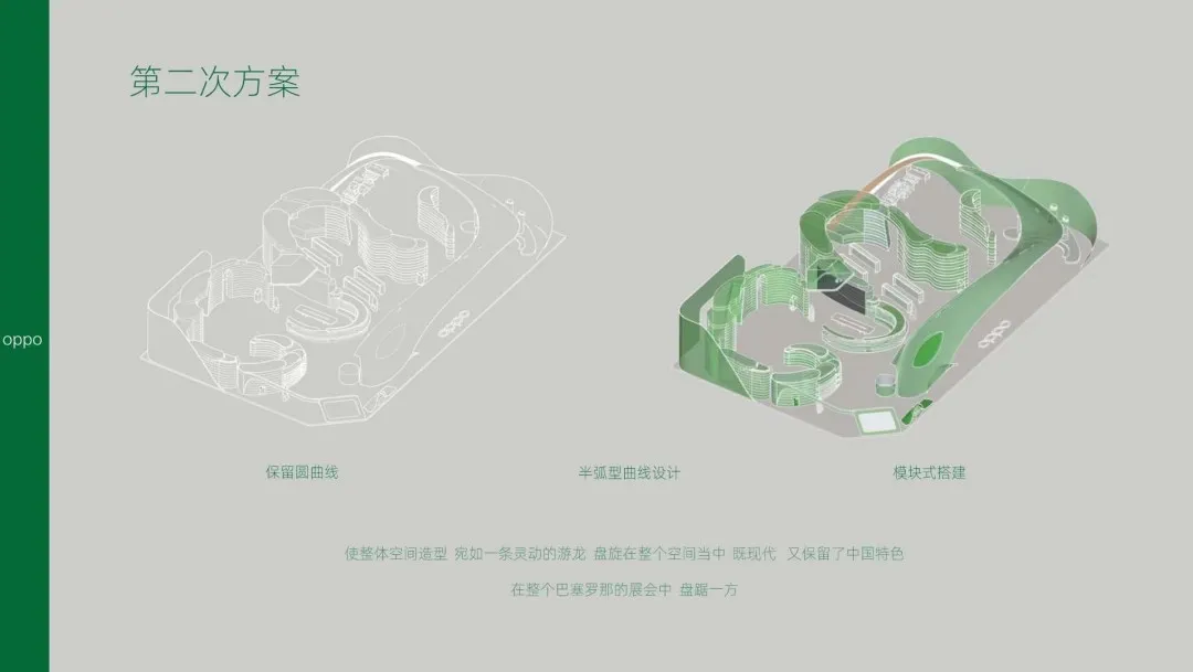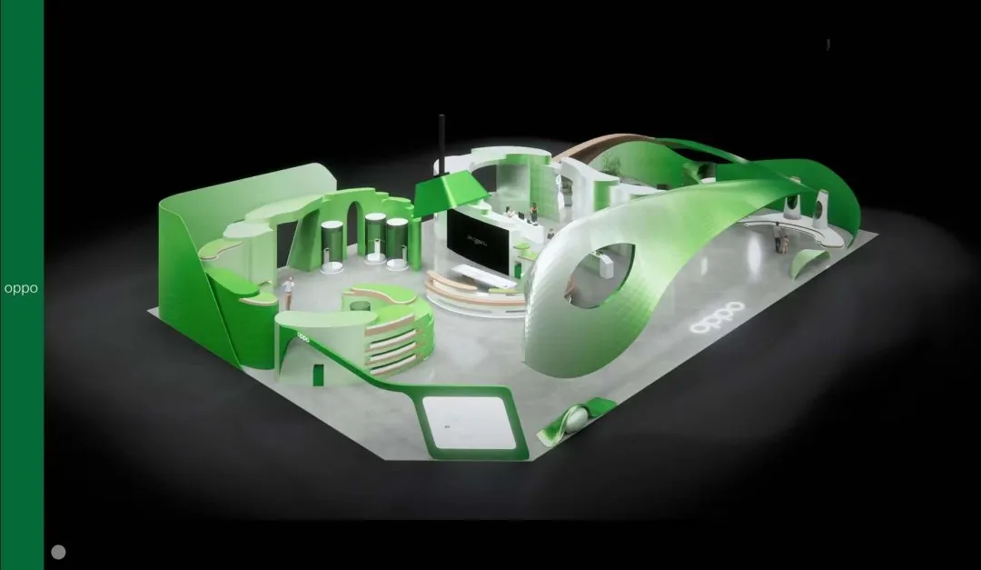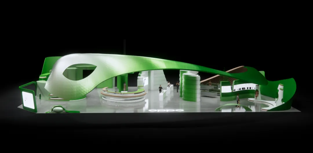 本次设计的服务对象是针对OPPO在巴塞罗那的一个展馆设计,整体风格是智能、现代、绿色、生态。整个展厅面积为872㎡,限高8m,展区共有六大功能分区,依次是;智能互联体验区,5G体验区,手机终端体验区,商业洽谈区,品牌信息呈现区,闪充生态场景。满足参观者的观展体验。