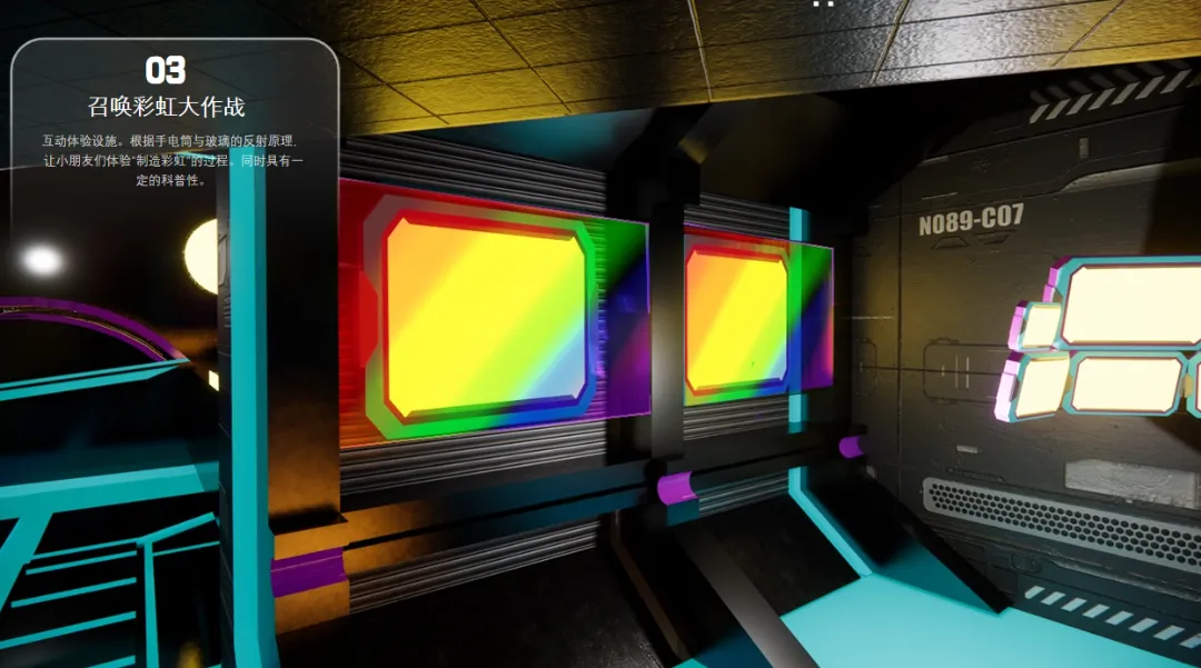 在互动体验馆中,将会贴合主题的设置一场在天空之城中的冒险。实现科普与游玩共存,让小朋友们在冒险中更深刻的了解关于天空的知识。