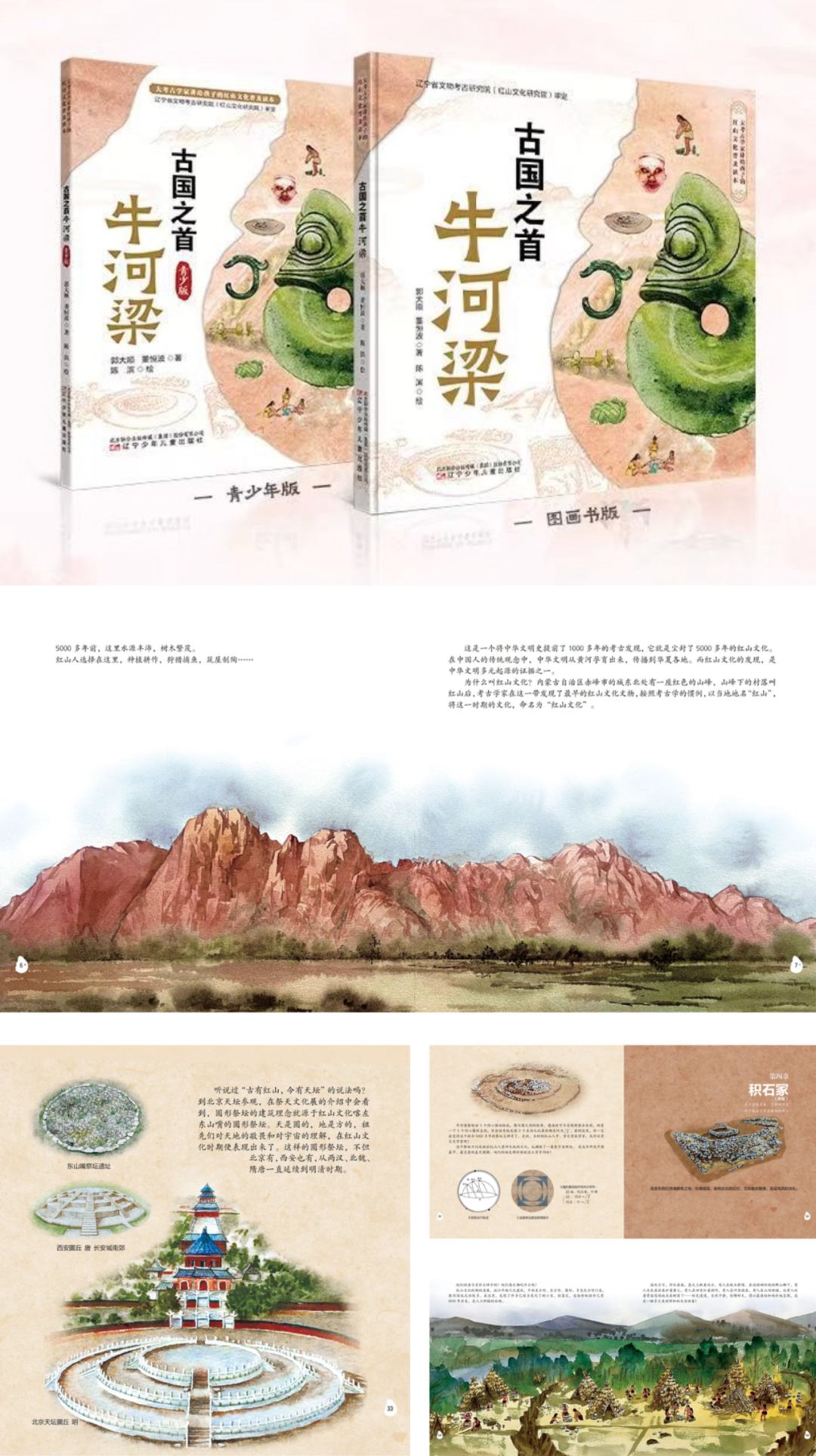 《古国之首牛河梁》是国内首部由权威考古学家团队指导、专为儿童打造的红山文化科普读物。为确保内容的严谨与真实,编创团队历时三年,先后奔赴牛河梁、东山嘴、赤峰红山后等红山文化核心遗址进行实地考察。该书的创作由辽宁省文物考古研究院(红山文化研究院)全程把关,严格审稿,反复改稿,确保从陶器纹饰、玉器工艺,到女神庙布局、先民生活场景等所有细节,均拥有准确的考古依据。