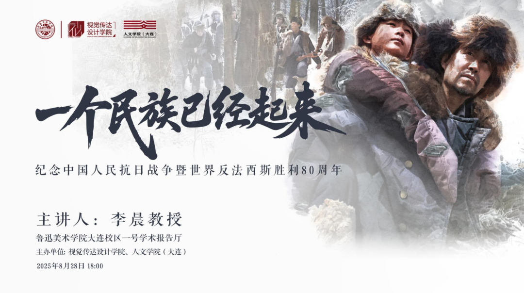 “一个民族已经起来。”伴随着穆旦先生诗句的回响,8月28日晚,鲁美大连校区的一号学术报告厅被历史与艺术点亮。视觉传达设计学院与人文学院(大连)联合举办的《一个民族已经起来》主题讲座如约而至。