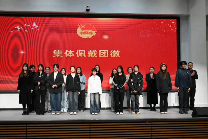 各二级院系团组织书记为新团员佩戴团徽,新团员们以庄重的神情接过这份属于青年的光荣,心中那份“赤心献祖国”的誓愿愈发坚定。
