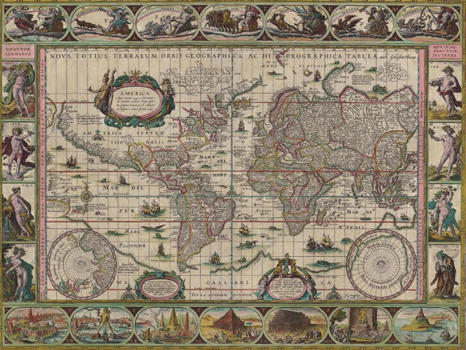 图 1,威廉·扬松·布劳:《最新最精确的全球地图》,铜版彩印,1630 年